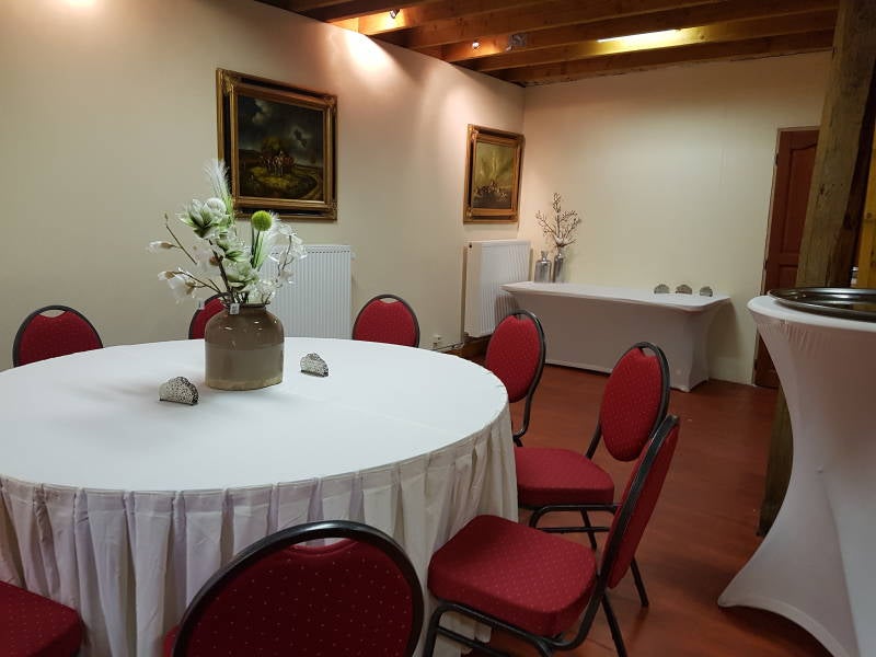 De feestzaal in het koetshuis van het kasteel is apart te huur voor een feestavond (max. 60-65 personen).